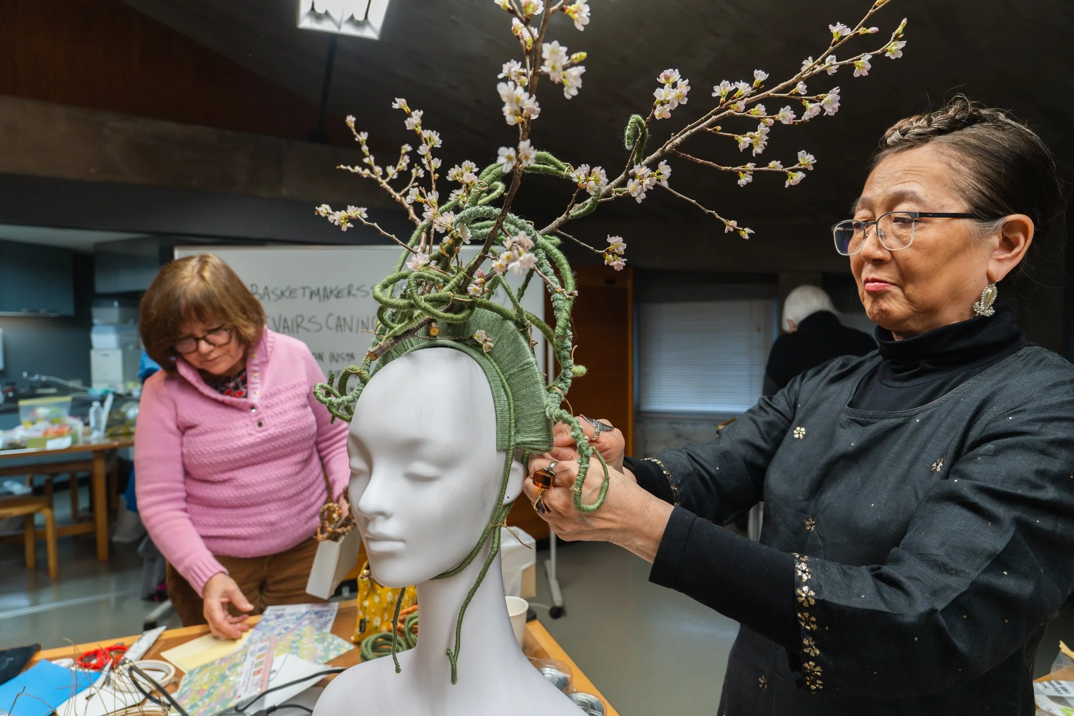 Following the success of their fall 2025 Ikebana collaboration, Dusk in Autumn: Bittersweet Sparkles Golden, Hitomi Gilliam and Quynh Nguyen reunite for a spring workshop that brings together paper artistry and floral mechanics in a new way: the wearable flower crown.