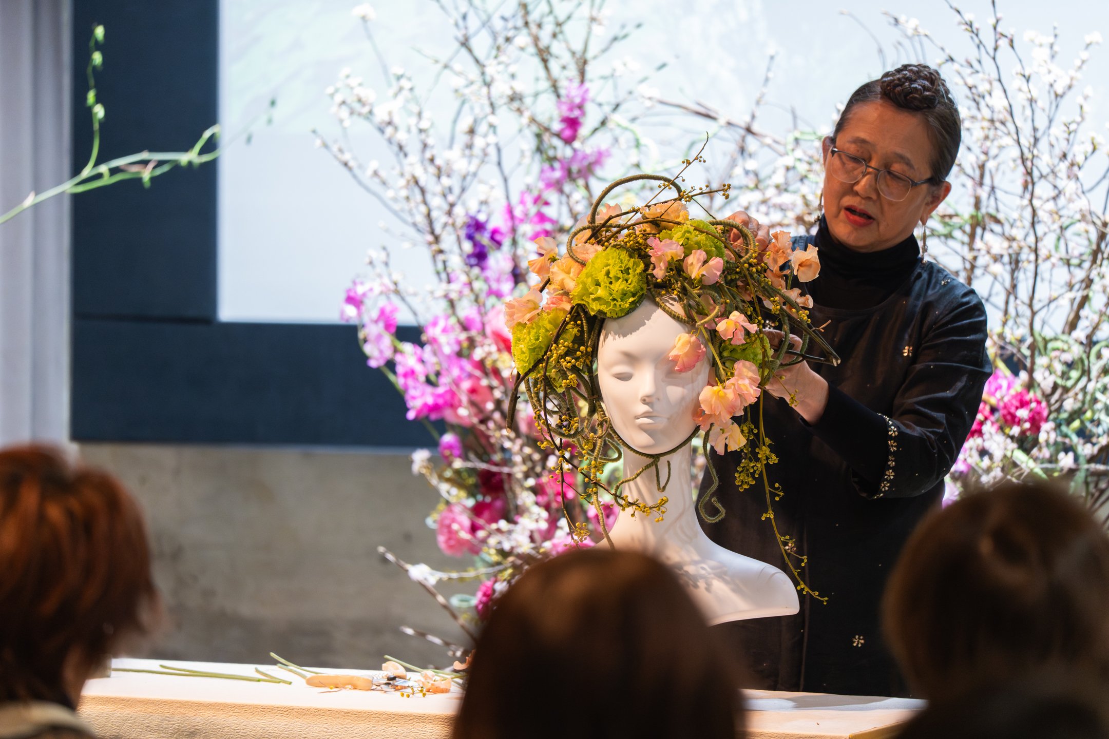 Hitomi will teach the mechanics of the ephemeral flower crown: structural framework, assembly technique, and the balance required to make a crown that is both artful and wearable. With nearly four decades of experience in floral mechanics and design education, Hitomi brings unmatched expertise to the structural side of this collaboration.