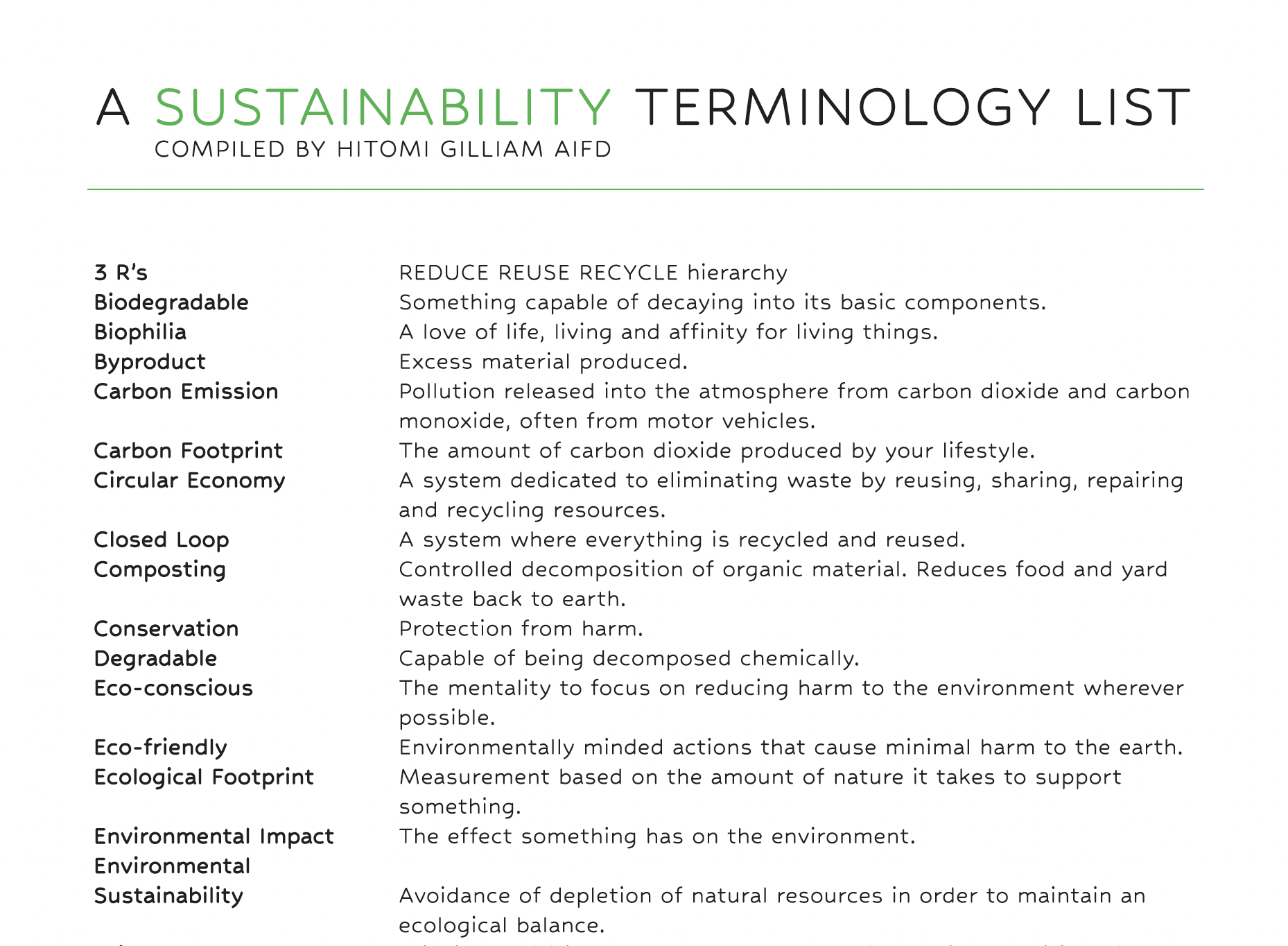 Hitomi’s Sustainability Terminology List